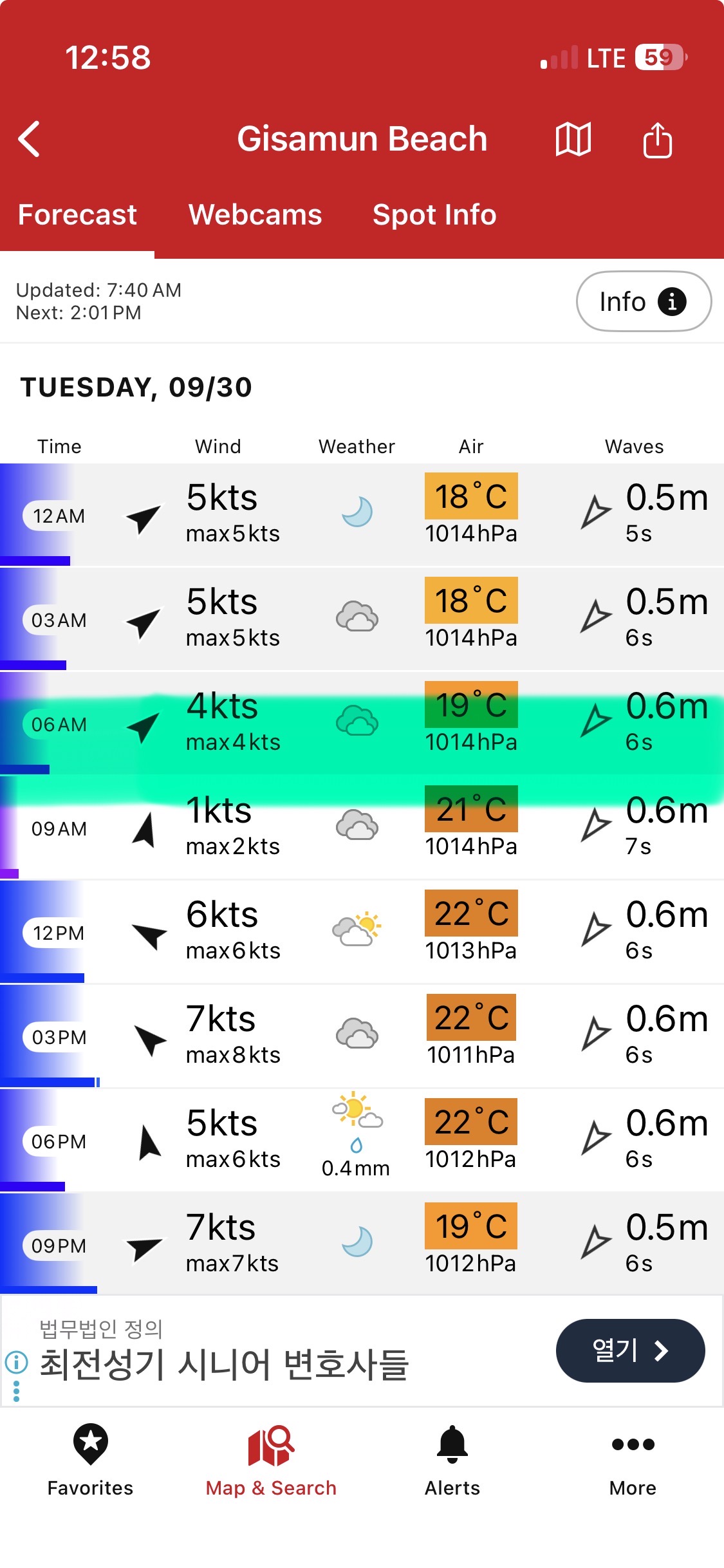 차트에선 0.6m라고 했는데 갑님이 보내주신 갯마을 영상은...